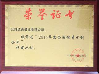 2014年度全國(guó)優(yōu)秀企業(yè)證書