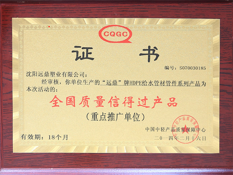 全國(guó)質(zhì)量信得過產(chǎn)品證書