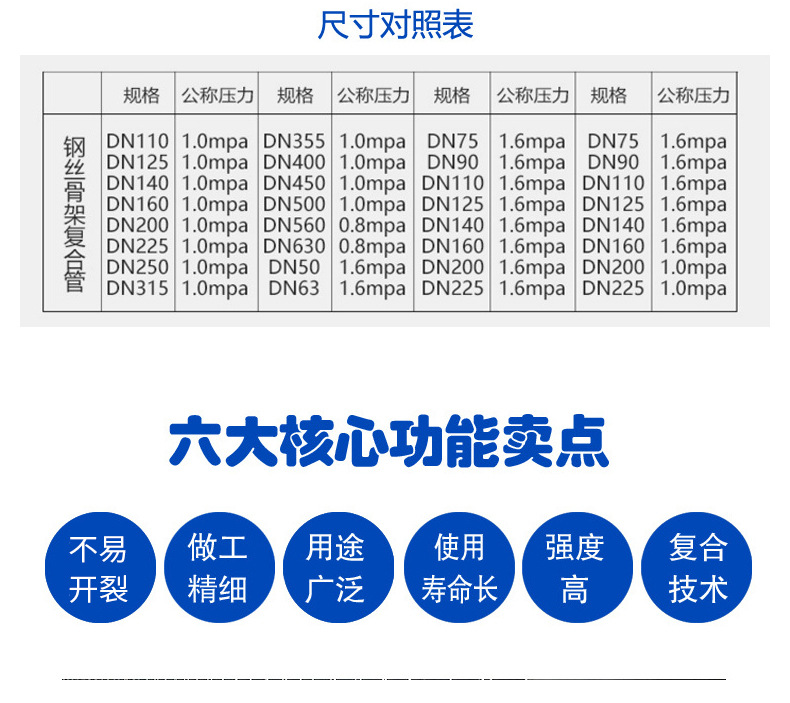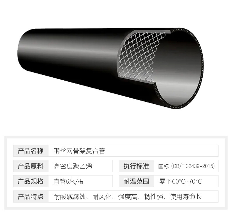 鋼絲網(wǎng)骨架聚乙烯復合管不但具有防腐、不結垢 、光滑低阻、保溫不結蠟、耐磨、質量輕等塑料管的共同特點,而且其獨特的結構還造就了如下特點: